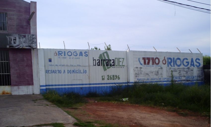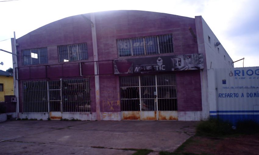 Gran galpon al frente dejando al lado una gran entrada para vehiculos del porte que sea, camiones, omnibus, etc.